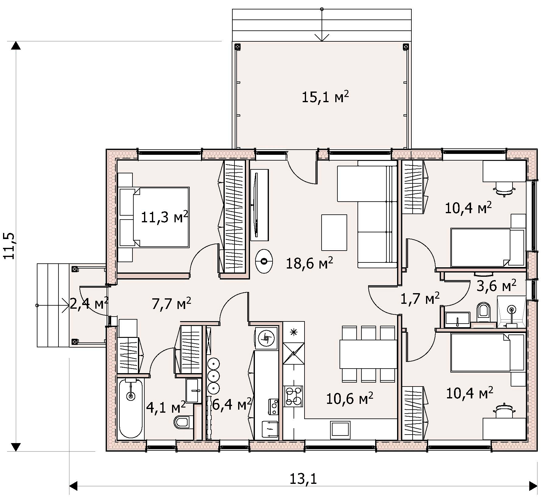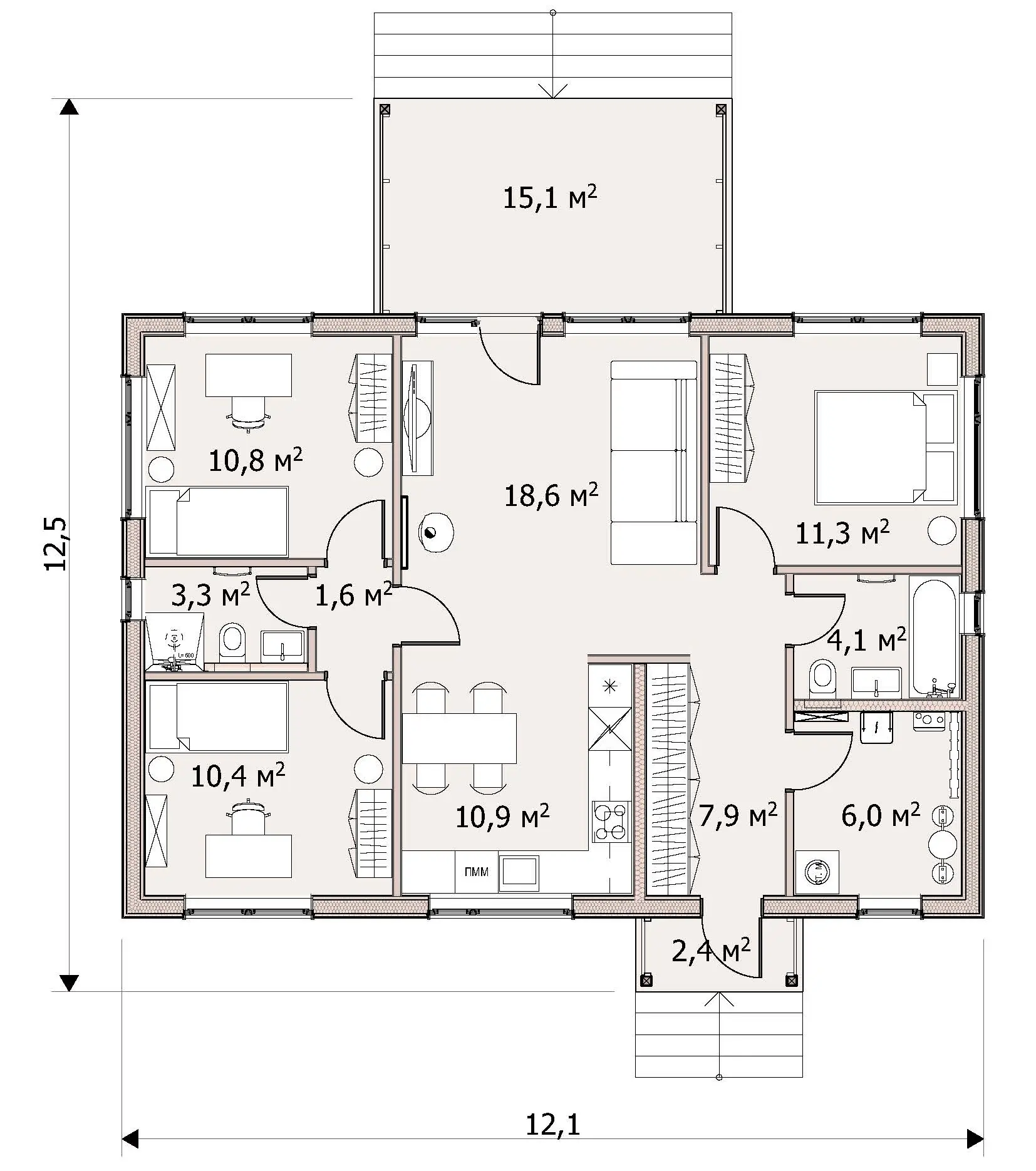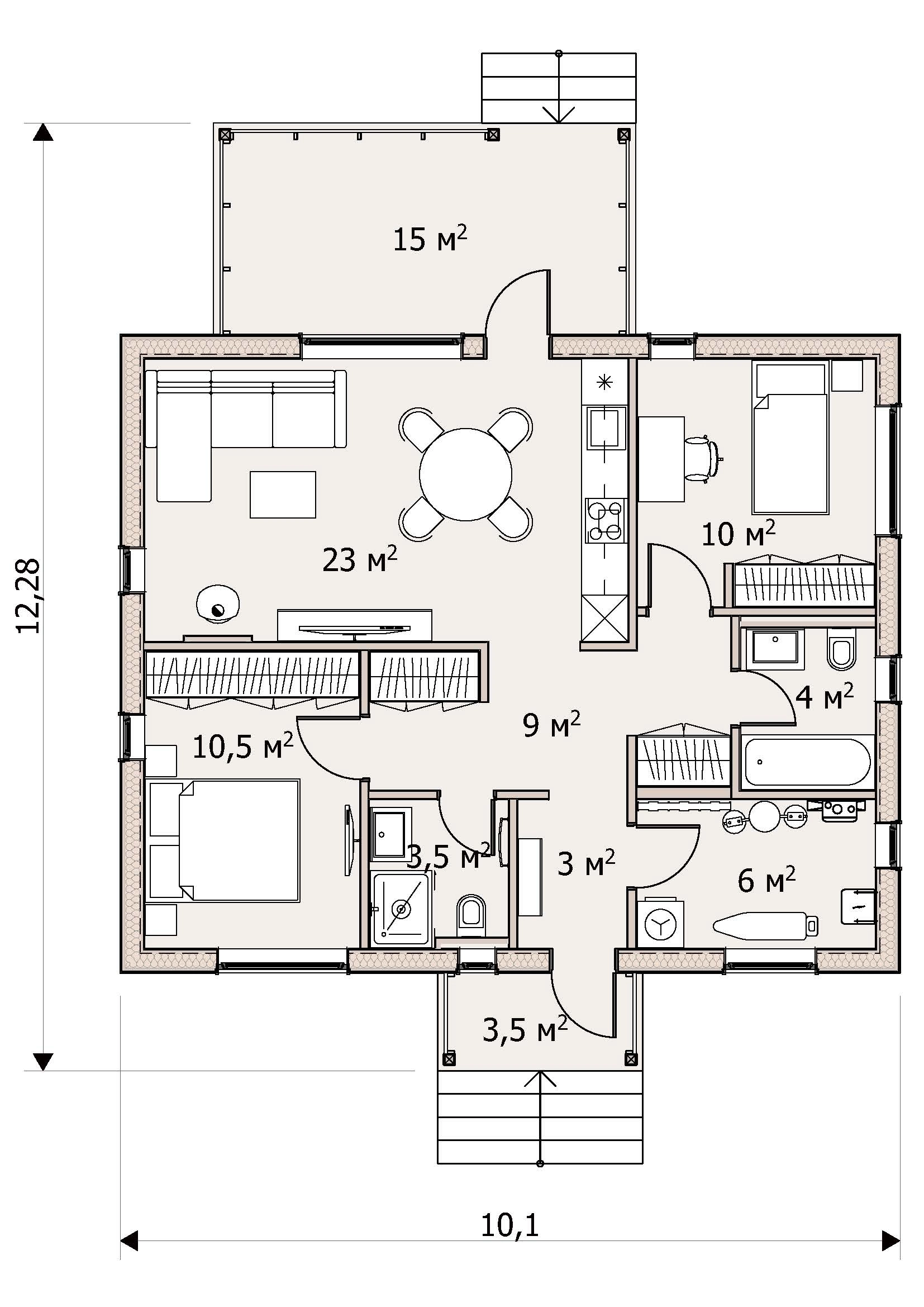 Небольшой дом для семьи из трех человек для постоянного проживания